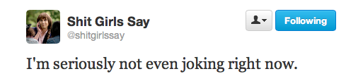 Tell me one girl that doesn't say this at least once per day. Seriously, tell me one.